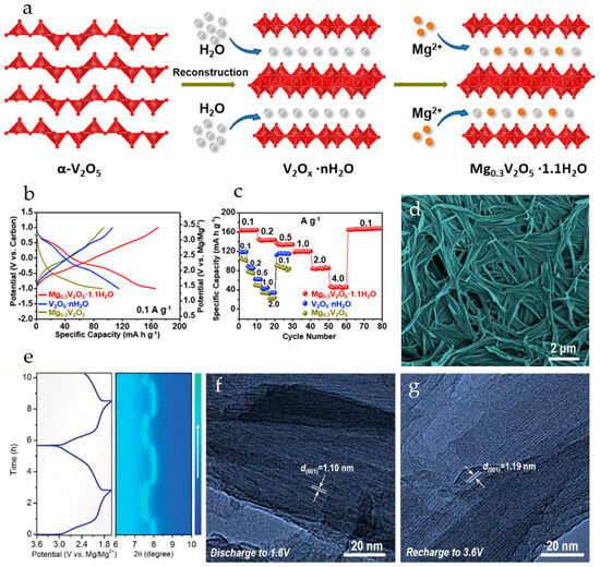 V2O5 has a high theoretical specific capacity of 294 mAh·g−1 when 1 mol of Mg2+ ion is inserted (x = 1) [28].