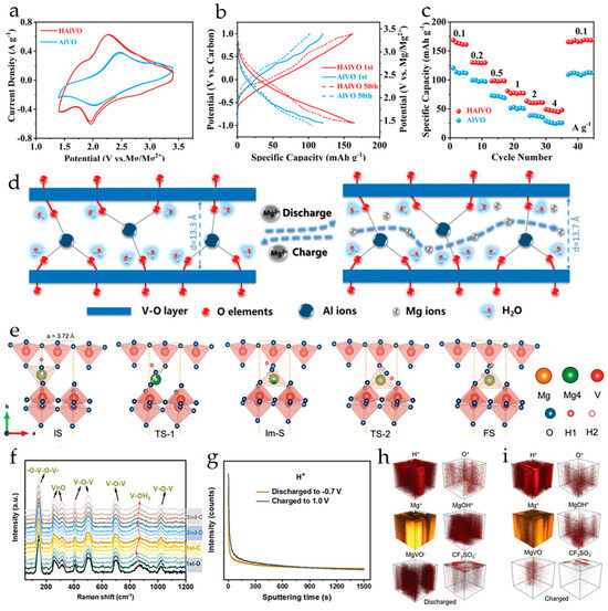 - Tang, H.; Chao, F.; Chen, H.; Jia, R.; Luo, H.; Xiong, F.; Yao, X.; Zhang, W.; Zuo, C.; Wang, J. Water-lubricated aluminum vanadate for enhanced rechargeable magnesium ion storage. Small 2022, 18, 2203525. [Google Scholar] [CrossRef] [PubMed]