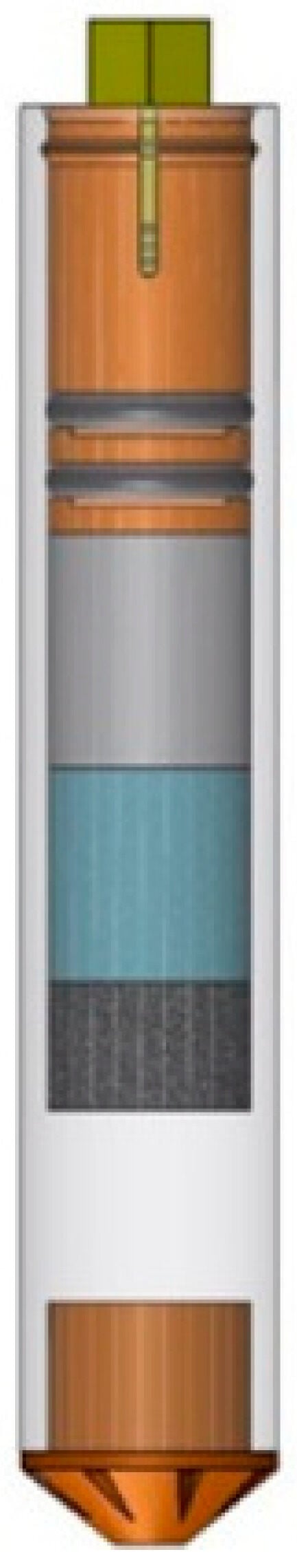 Model high-temperature/pressure WHiMS MAS rotor with a three-phase sample mixture, solid (black), liquid (blue) and gas (gray). Adapted from Ref. [] with permission.