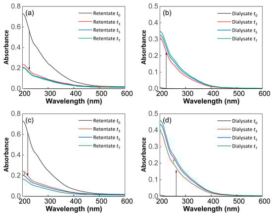 3.1. Variations in the DOC Concentrations and Optical Parameters of the UV–Vis Spectra in the Retentate and Dialysate