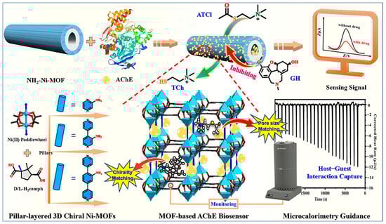 - Zhang, L.; Qiao, C.; Cai, X.; Xia, Z.; Han, J.; Yang, Q.; Zhou, C.; Chen, S.; Gao, S. Microcalorimetry-Guided Pore-Microenvironment Optimization to Improve Sensitivity of Ni-MOF Electrochemical Biosensor for Chiral Galantamine. Chem. Eng. J. 2021, 426, 130730. [Google Scholar] [CrossRef]