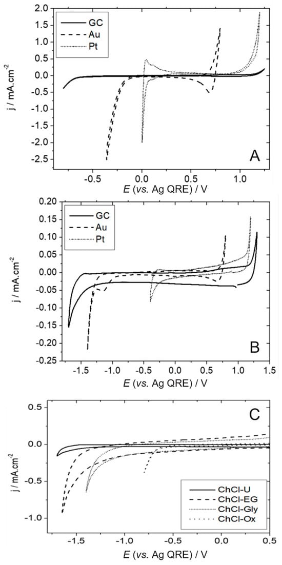 - Vukmirovic, M.B.; Adzic, R.R.; Akolkar, R. Copper electrodeposition from deep eutectic solvents—Voltammetric studies providing insights into the role of substrate: Platinum vs glassy carbon. J. Phys. Chem. B 2020, 124, 5465–5475. [Google Scholar] [CrossRef] [PubMed]