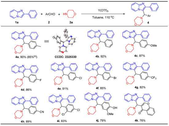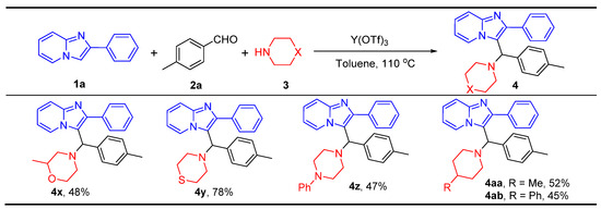 APA StyleYang, K., Chen, C.-B., Liu, Z.-W., Li, Z.-L., Zeng, Y., & Wang, Z.-Y. (2024). C3-Alkylation of Imidazo[1,2-a]pyridines via Three-Component Aza-Friedel–Crafts Reaction Catalyzed by Y(OTf)3. Molecules, 29(15), 3463. https://doi.org/10.3390/molecules29153463
