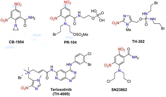 - Denny, W.A. Nitroaromatic Hypoxia-Activated Prodrugs for Cancer Therapy. Pharmaceuticals 2022, 15, 187. [Google Scholar] [CrossRef]
