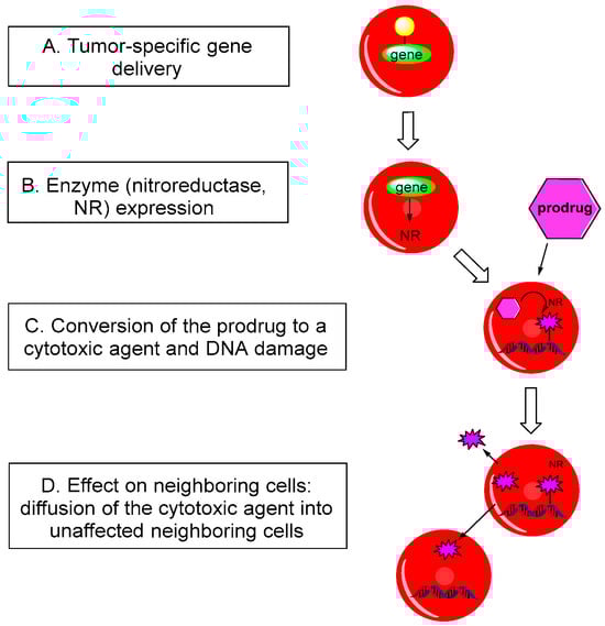 The specificity of GDEPT allows for high concentrations of the cytotoxic agent to be generated directly within the tumor, minimizing the damage to surrounding healthy tissues. Over the past twenty years, the GDEPT approach has seen significant progress, with numerous enzyme/prodrug systems proving effective in preclinical and clinical studies. Nonetheless, considerable efforts are still required to fully harness the potential of this promising cancer treatment option [].
