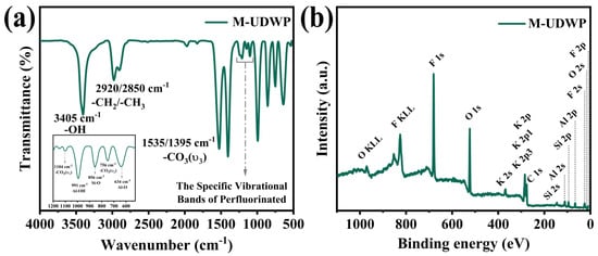 FTIR spectroscopy results of M-UDWP (a) and XPS full spectrum of M-UDWP (b).