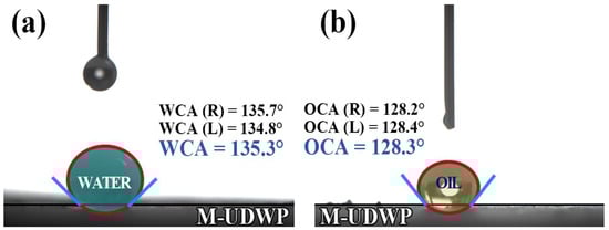 - The water contact angle (WCA) and oil contact angle (OCA) of the modified M-UDWP are 135.3° and 128.3°, respectively, with hydrophobicity and oleophobicity ratios of 90.34% and 86.59%.