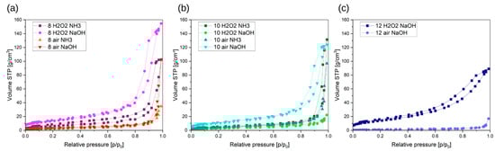 Overview of samples: (a) 12 air NaOH, (b) 12 H2O2 NaOH, and (c) 12 H2O2 NaOH.