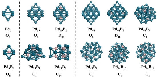 2.1. The Structures of Sub-Nanosized PdxBy Clusters