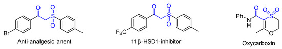 - Reddy, R.J.; Kumari, A.H.; Kumar, J.J. Recent advances in the synthesis and applications of β-keto sulfones: New prospects for the synthesis of β-keto thiosulfones. Org. Biomol. Chem. 2021, 19, 3087–3118. [Google Scholar] [CrossRef]