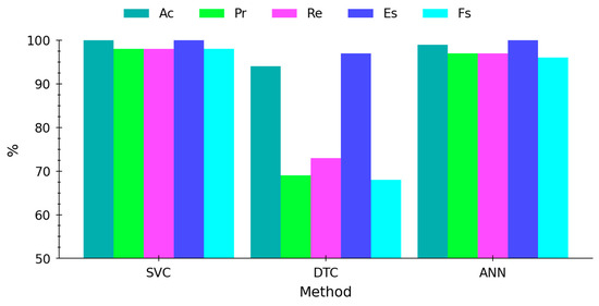 2.3.2. Analysis of Machine Learning Using SVC, DTC, and ANN