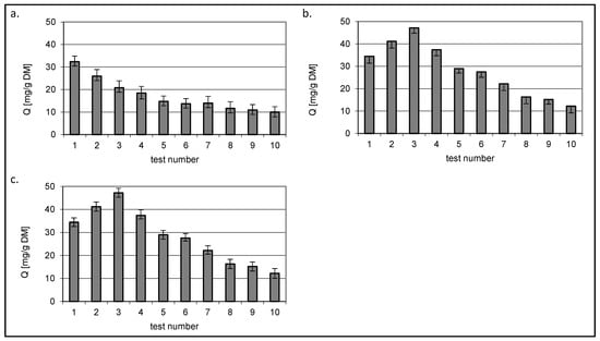 Analysis of the results of the constants from Langmuir’s Equation (2), shown in Table 5 and Table 6, indicates that there are two types of sorption centres in the tested sorbents.