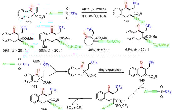 - Zhi, S.; Yao, H.; Zhang, W. Difunctionalization of dienes, enynes and related compounds via sequential radical addition and cyclization reactions. Molecules 2023, 28, 1145. [Google Scholar] [CrossRef]
