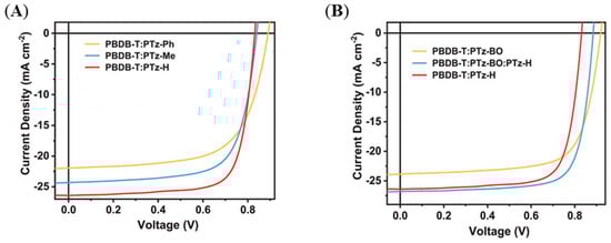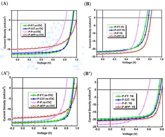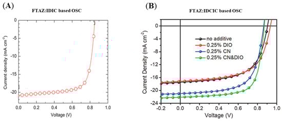 The J-V curves recorded under AM1.5G (100 mWcm−2) illumination of (A) FTAZ:IDIC-based device, [34] © 2018 WILEY-VCH Verlag GmbH & Co. KGaA, Weinheim; (B) FTAZ:IDCIC-based device, [35] © 2018 WILEY-VCH Verlag GmbH & Co. KGaA, Weinheim.