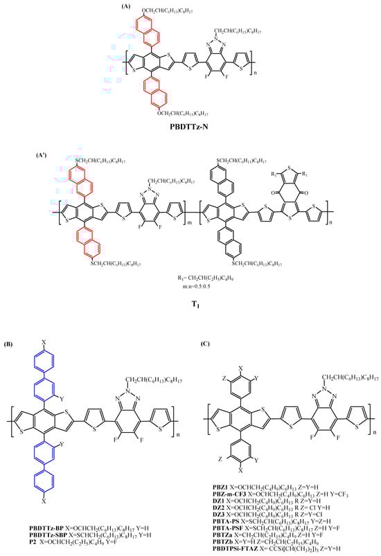 2.1.1. FTAZ-Conjugated Polymers with BDT as Donor Moiety