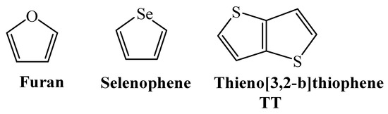 Thieno[3,2-b]thiophene, BDT Figure 5, which is usually connected to the thiophene bridge along the polymer backbone via one of the condensed thiophenes except for just one case where it is linked via the X group, is the most used donor molecule in BzT-based polymers: actually, its rigid and planar structure provides great potential for tuning the energy levels, bandgaps, and charge carrier mobility with the desired chemical structure modifications via side-chain engineering, i.e., the convenient choice of the X group [26].