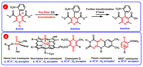 (a) The oxidative metabolism process of Nifedipine in vivo. (b) Some common oxidoreductases in vivo.