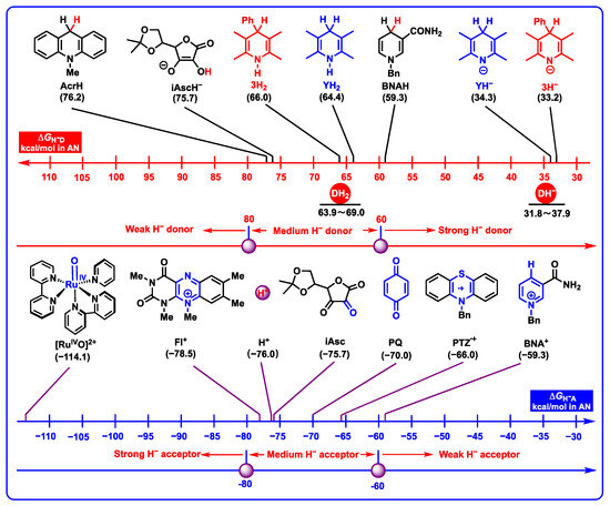- Shen, G.-B.; Qian, B.-C.; Fu, Y.-H.; Zhu, X.-Q. Thermodynamics of the Elementary Steps of Organic Hydride Chemistry Determined in Acetonitrile and their Applications. Org. Chem. Front. 2022, 9, 6001–6062. [Google Scholar] [CrossRef]