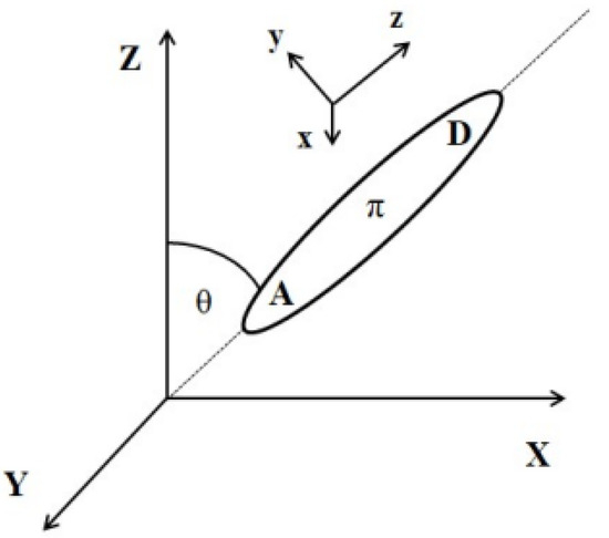 Relationship between laboratory and molecular coordinate systems.