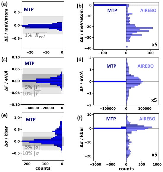 Conversely, for ranking the MTPs meant for MD simulations, a possible criterion that is also chosen here is their performance when describing the forces acting on atoms in a set of validation structures not used in the parametrization (see Section 3 for details on the generation of the validation structures). As an alternative to picking the “best” MTP, one can calculate the quantities of interest with all five MTPs, and then take the mean and standard deviation of the different predictions. This approach was used by the MLIP developers in their original paper [26] and it has the advantage of obtaining an uncertainty estimate by the means of the standard deviation, which can, for example, be compared to the difference between the MTP- and DFT-calculated quantities. Thus, for selected quantities, in the following, mean values will also be specified.