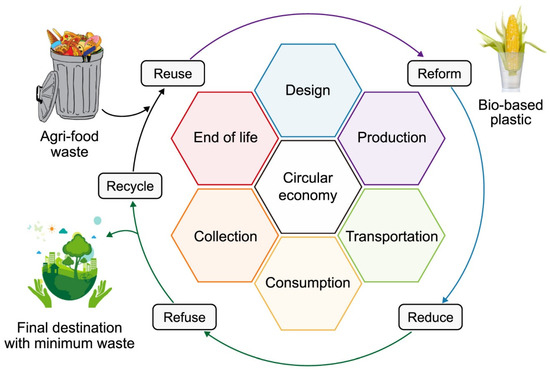 Circular plastic economy concept and bioplastic End-of-life.