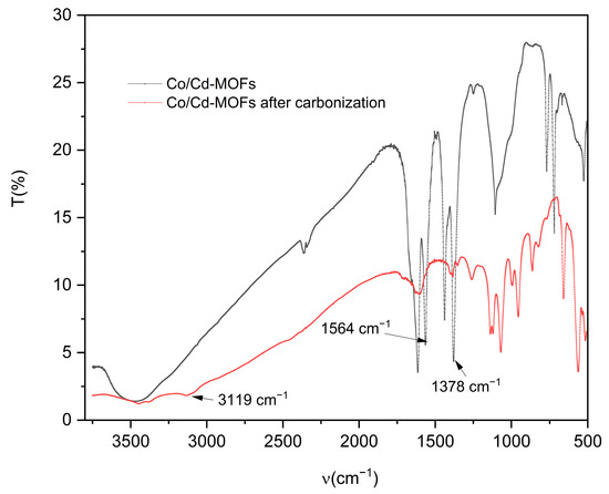 FT-IR of Co/Cd-MOFs before and after carbonization.