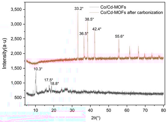 XRD of Co/Cd-MOFs before and after carbonization.