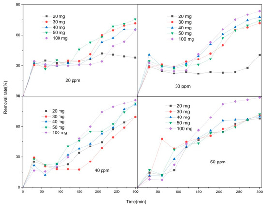 Removal rate (%) = ((C0 − Ct))/C0 × 100%