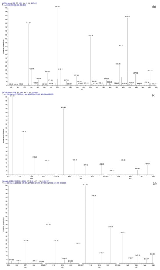 The degradation products of TC were derived by analyzing using a liquid mass spectrometer of Thermo Fisher Scientific brand model Thermo Scientific TSQ Fortis Plus, USA. The test conditions were as follows: the inlet temperature was 290 °C, the carrier gas was high-purity helium at a flow rate of 20 mL·min−1, and the split ratio was non-split sampling. The heating procedure of LC–MS was as follows: the initial temperature was 80 °C with a retention time of 1 min; the temperature was then increased at a rate of 3 °C·min−1 to 161 °C, and then to 220 °C at 5 °C·min−1; and the temperature was finally increased at a rate of 10 °C·min−1 to 300 °C with a retention time of 5 min. Finally, the running was continued at 300 °C for 5 min.