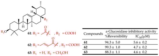 - Kalaycıoğlu, Z.; Uzaşçı, S.; Dirmenci, T.; Erim, F.B. α-Glucosidase Enzyme Inhibitory Effects and Ursolic and Oleanolic Acid Contents of Fourteen Anatolian Salvia Species. J. Pharm. Biomed. Anal. 2018, 155, 284–287. [Google Scholar] [CrossRef] [PubMed]