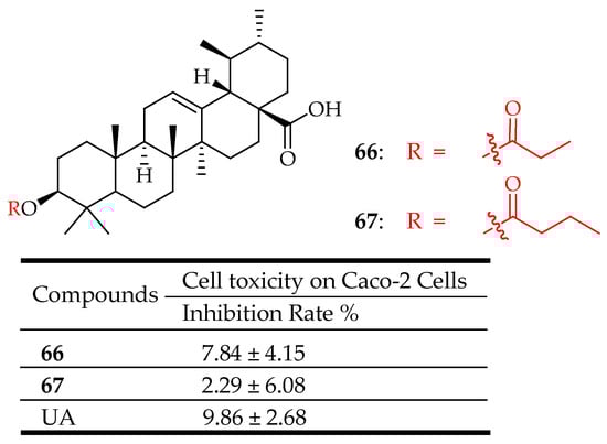- Wu, P.; He, P.; Zhao, S.; Huang, T.; Lu, Y.; Zhang, K. Effects of Ursolic Acid Derivatives on Caco-2 Cells and Their Alleviating Role in Streptozocin-Induced Type 2 Diabetic Rats. Molecules 2014, 19, 12559–12576. [Google Scholar] [CrossRef] [PubMed]