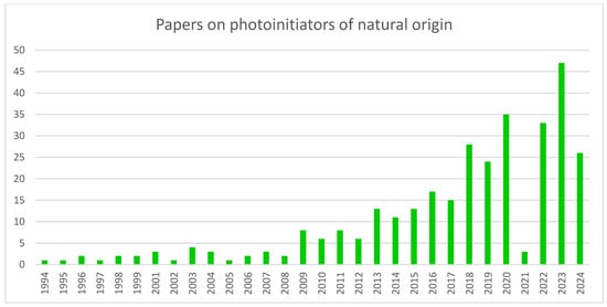 A chart showing the growing trend of interest in photoinitiators of natural origin. Made based on data from Scopus.