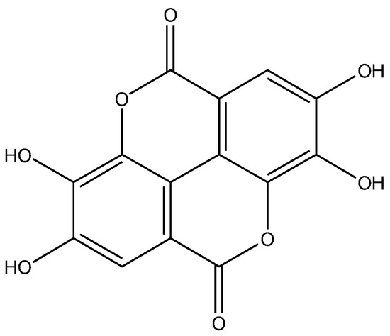 - CAS 476-66-4. National Institute for Food and Drug Control (Beijing, China). Available online: https://pubchem.ncbi.nlm.nih.gov/compound/Ellagic-Acid (accessed on 7 August 2024).