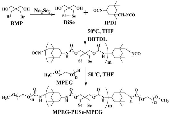 3.4. Synthesis of MPEG-b-PUSe-b-MPEG Triblock Copolymers
