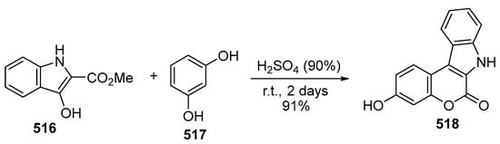 - Irgashev, R.A.; Karmatsky, A.A.; Slepukhin, P.A.; Rusinov, G.L.; Charushin, V.N. A convenient approach to the design and synthesis of indolo[3,2-c]coumarins via the microwave-assisted Cadogan reaction. Tetrahedron Lett. 2013, 54, 5734–5738. [Google Scholar] [CrossRef]