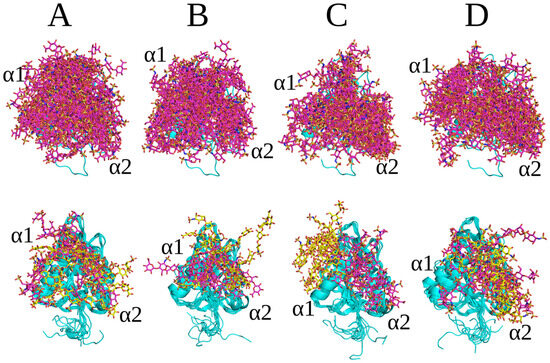 - Kirschner, K.N.; Yongye, A.B.; Tschampel, S.M.; González-Outeiriño, J.; Daniels, C.R.; Foley, B.L.; Woods, R.J. GLYCAM06: A generalizable biomolecular force field. Carbohydrates. J. Comput. Chem. 2008, 29, 622–655. [Google Scholar] [CrossRef] [PubMed]