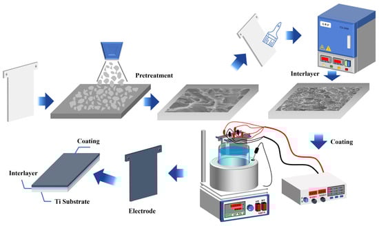 The Ti foil (TA1), with a 1.5 mm thickness, was cut into pieces with a dimension of 80 mm × 100 mm before the experiments. The surface of the Ti sheet was subjected to pre-treatment to obtain a gray surface with uniform roughness. The pre-treatment contained degreasing, polishing, and etching for 2 h in boiling oxalic acid. Finally, the specimens were washed with distilled water.
