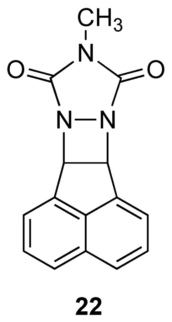 - Breton, G.W.; Hughes, J.S.; Pitchko, T.J.; Martin, K.L.; Hardcastle, K.J. Unexpected Sigma Bond Rupture during the Reaction of N-Methyl-1,2,4-triazoline-3,5-dione with Acenaphthylene and Indene. Org. Chem. 2014, 79, 8212–8220. [Google Scholar] [CrossRef] [PubMed]