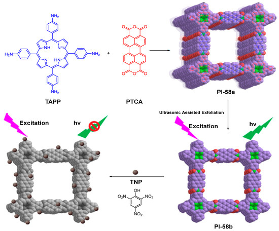 - Zhang, C.; Zhang, S.; Yan, Y.; Xia, F.; Huang, A.; Xian, Y. Highly Fluorescent Polyimide Covalent Organic Nanosheets as Sensing Probes for the Detection of 2,4,6-Trinitrophenol. ACS Appl. Mater. Interfaces 2017, 9, 13415–13421. [Google Scholar] [CrossRef]
