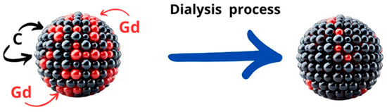 Given the high surface area of CQDs, the surface-bound Gd atoms can be selectively removed through dialysis (see Figure 12), which is a purification technique used to separate small molecules and ions from larger molecular complexes.