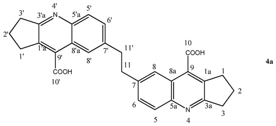 2.1.3. 7,7′-(Ethane-1,2-diyl)bis(2,3-dihydro-1H-cyclopenta[b]quinoline-9-carboxylic Acid) (4a)