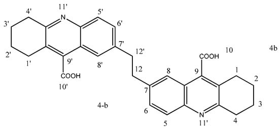 Structure of 7,7′-(ethane-1,2-diyl)bis(1,2,3,4-tetrahydroacridine-9-carboxylic acid) (4b).
