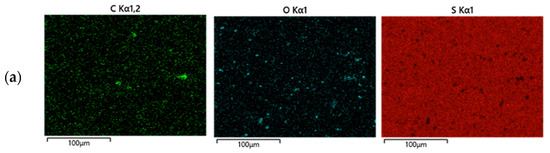UV-vis data were collected on Agilent Technologies Cary 60 UV-vis (Agilent Technologies, Inc., Santa Clara, CA, USA) using Simple Reads software (Cary WinUV Scan Application Version 5.1.0.1016) over the range of 400–600 nm. Dark sulfur was quantified by using the extinction coefficient of sulfur at 275 nm along with the absorbance of ethyl acetate soluble fraction of each composite.