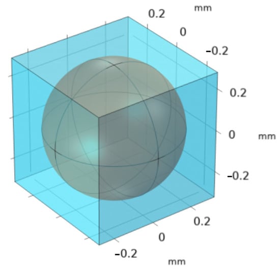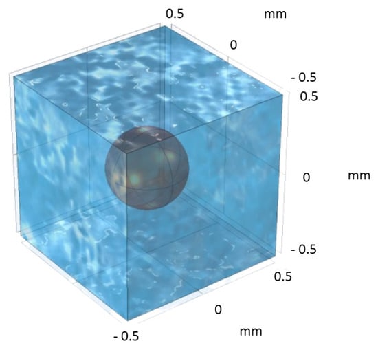 In the computational model at the pore (micro) level, a unit cell was created such that it features a particle with a radius of 0.33 µm, positioned within a cubic cell with each side measuring 1 µm, as shown in Figure 4. The appropriate boundary conditions were implemented by us to solve Stokes’ equation within this periodic unit cell to generate the requisite pore-level velocity field. Later, the same unit cell was used to solve the closure formulation equations. Subsequent to the application of these conditions, the adsorption-induced vector, uβ, and the total dispersion tensor, , were determined.