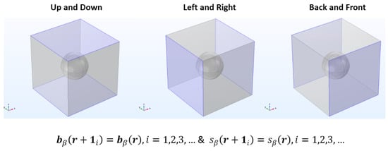 One should note that directly implementing the periodicity b.c.s in the original porous medium is not feasible due to the random distribution of particles. However, Whitaker [34] suggested that in such cases, the use of a periodic unit cell is admissible because the resulting errors, which are confined to the borders of the unit cell, are insignificant. This approach provides an approximation of periodic behavior within the porous medium, overcoming the challenges posed by the random particle distribution. As a result, the opposite faces of the unit cell have periodicity b.c.s [Equations (21c) and (22c)].