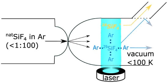 It is important to also consider the nuclear spin, which is a non-mass-dependent property and can be observed in nuclear magnetic resonance (NMR) spectroscopy. In the case of 19F NMR spectroscopy, the fluorine nuclei in silicon tetrafluoride provide a strong signal due to their 100% natural abundance and magnetic properties. In contrast, 29Si NMR spectroscopy can provide detailed insights into the local chemical environment of the silicon nucleus in SiF4. Due to its nuclear spin of ½, 29Si interacts with external magnetic fields. In contrast, 28Si does not interact with such fields due to its nuclear spin of zero [75]. These NMR techniques are essential for studying the structural and electronic properties of SiF4 without the direct influence of isotopic mass [76,77].