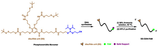 Synthesis of disulfide unit-conjugated oligonucleotide (SS-ODN-FAM).