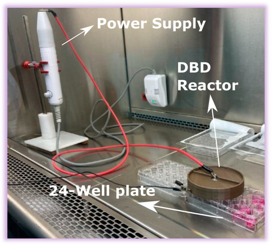- Khosravi, S.; Jafari, S.; Zamani, H.; Nilkar, M. Inactivation of Staphylococcus aureus and Escherichia Coli Biofilms by Air-Based Atmospheric-Pressure DBD Plasma. Appl. Biochem. Biotechnol. 2021, 193, 3641–3650. [Google Scholar] [CrossRef]