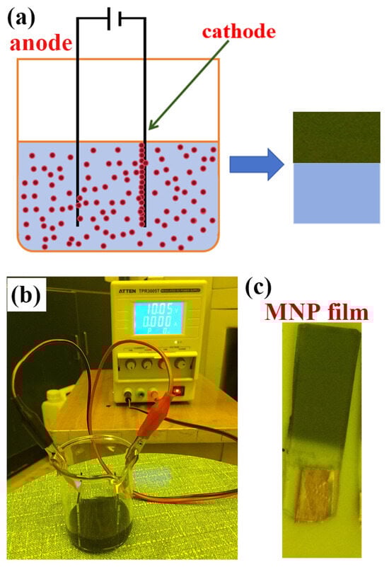 (a) Schematic illustration of the electrophoretic deposition method. (b) Experimental equipment used for assembling 3D-GNSs via electrophoretic deposition. (c) Physical picture of 3D-GNSs assembled via electrophoretic deposition.