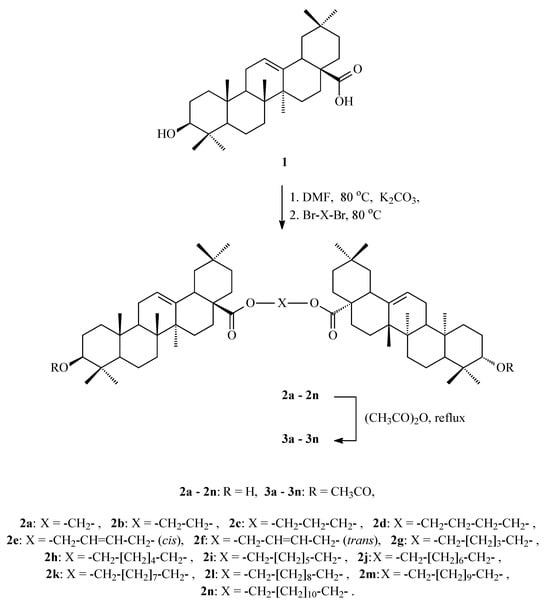 Synthesis of Acetylated Oleanolic Acid Dimers (AcOADs) 3a–3n.